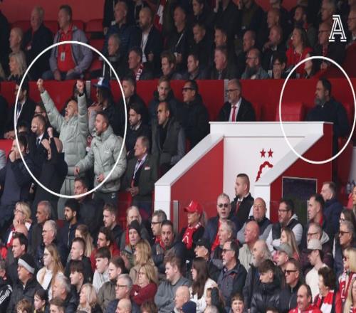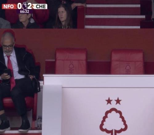 马雷斯卡看台庆祝切尔西进球,与身后森林老板形成鲜明反差