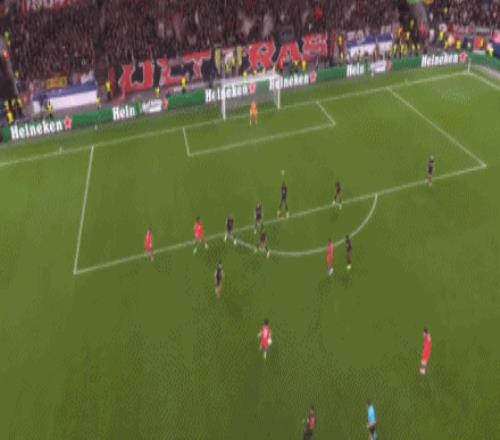 上半场比赛2队便直接拉开架势对攻;第7分钟,门德斯战术角球送出传中,帕乔高高跃起头球破门,1:0!大巴黎梦幻开局。第25分钟,扎巴尔尼禁区内犯规被判黄点套餐,不过格里马尔多主罚点球打到立柱弹出!第29分钟,巴尔克拉挑传,马尤卢胸部停球后劲射回敬了一次立柱。