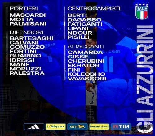 意大利U21名单公布,巴特萨基、皮西利、卡马达、科莱奥肖在列,本月意大利U21将在U21欧洲杯预选赛对阵波兰U21、黑山U21。