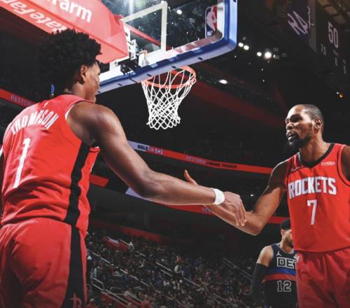 火箭近期状态复苏,过去5场比赛取得4胜1负,而在上一场更是在背靠背掀翻东部第一的活塞。背靠背前一场加时赛不敌76人,可火箭没有太多时间去沮丧,很快投入战斗,靠着杜兰特的32分7篮板,成功在客场取胜。目前火箭战绩为27胜16负,排在西部第四,距离第二的马刺差了2.5个胜场。