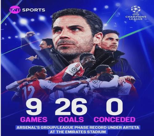 阿尔特塔执教阿森纳前300场取胜177场,超温格创造队史纪录 -