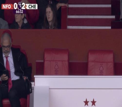马雷斯卡看台庆祝切尔西进球,与身后森林老板形成鲜明反差