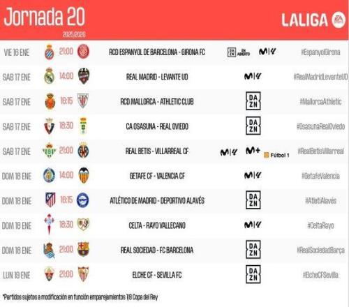西甲第20轮开球时间:皇马2100开打,巴萨凌晨4点进行